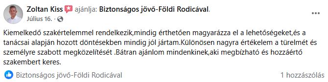 Személyre szabott pénzügyi tanácsadással segítem magánszemélyek megtakarításait, befektetéseit és jövőtervezését, hogy biztonságosabb, kiszámíthatóbb pénzügyi alapokat teremtsenek maguknak és családjuknak.